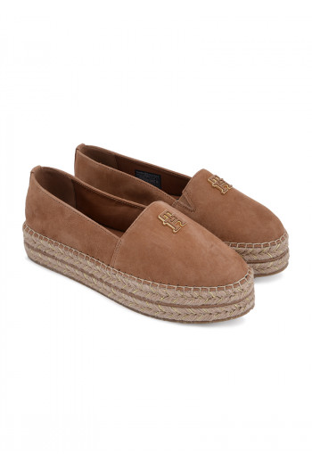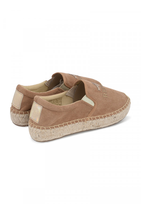 Opis: Ženske espadrile od veštačke antilop kože u kamel boji sa logo printom