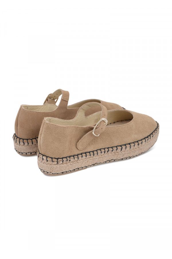 Opis: Kožne ženske espadrile u bež boji sa kaišem i štepovima