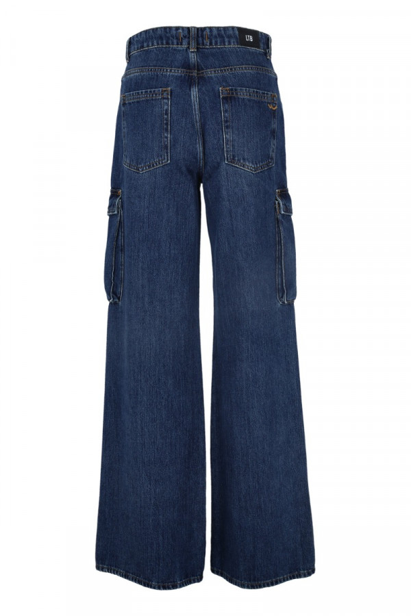 Opis: Ženske kargo farmerke u teget boji sa trapezastim nogacicama i visokim pojasom