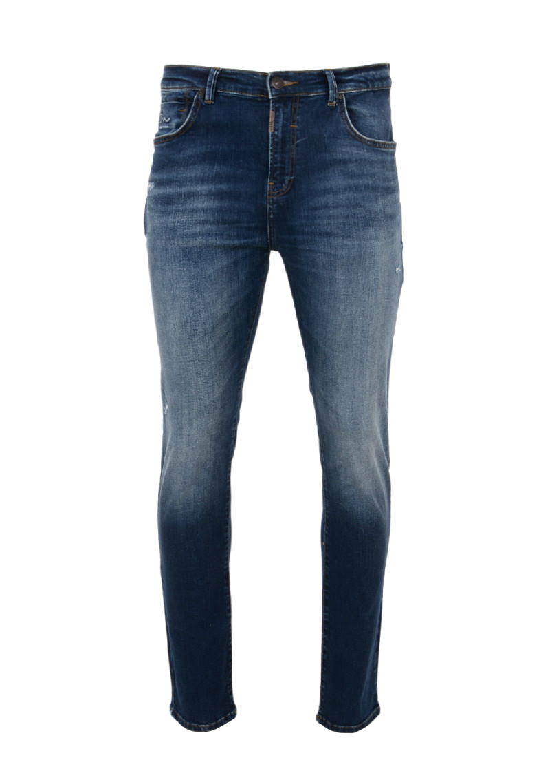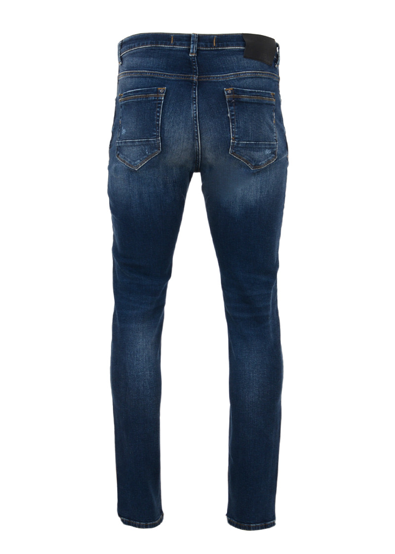 Opis: Muške slim fit farmerke od izbledelog teksasa u teget boji