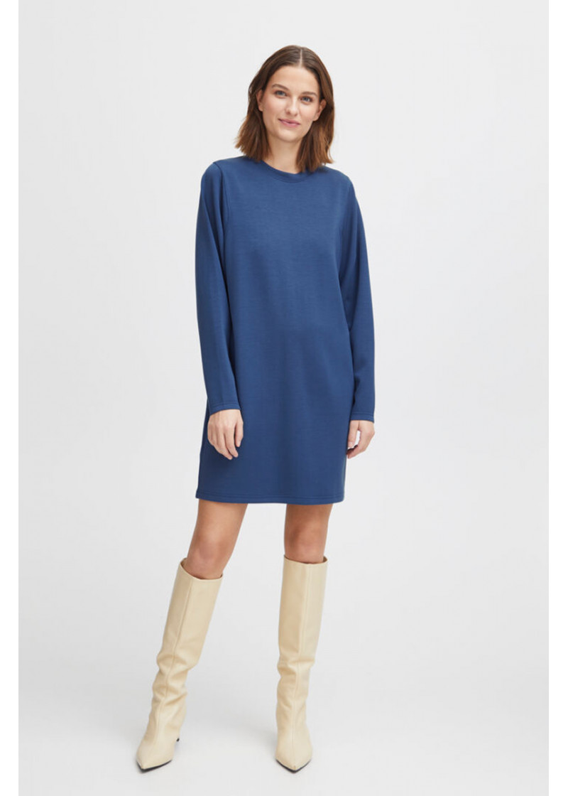 Opis: Kratka haljina ravnog kroja u tamno plavoj boji sa okruglim izrezom