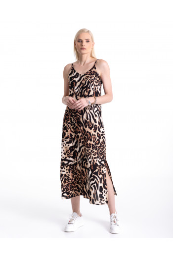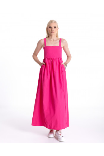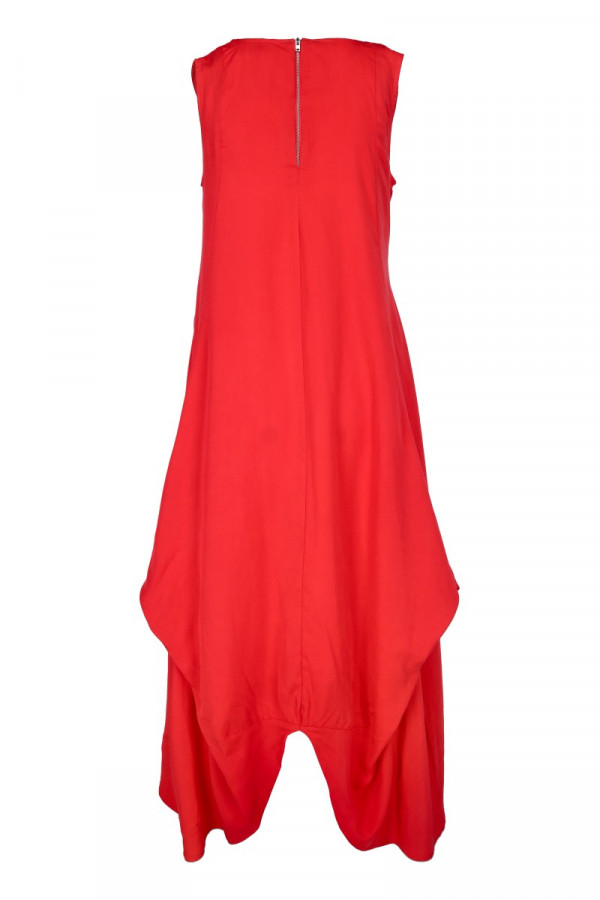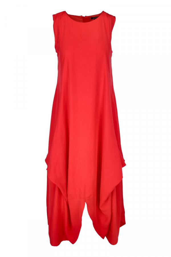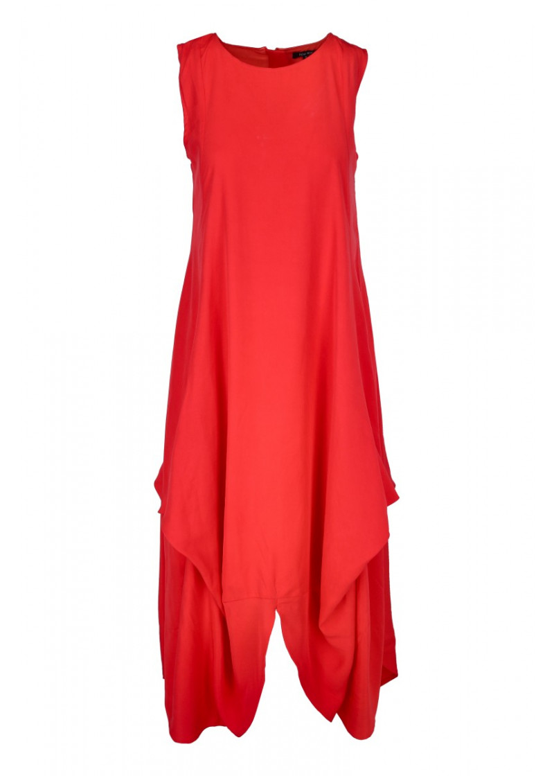 Opis: Haljina bez rukava u mango boji sa volanima asimetrične dužine