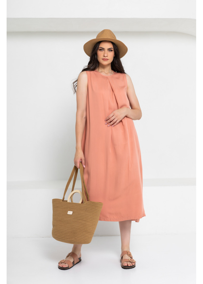 Opis: Midi haljina ležernog kroja sa pirokom faltom na prednjoj strani