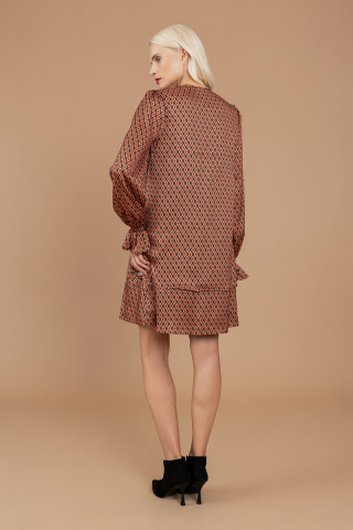 Opis: Haljina šireg kroja sa dugim rukavina, V-e izrezom i karnerima