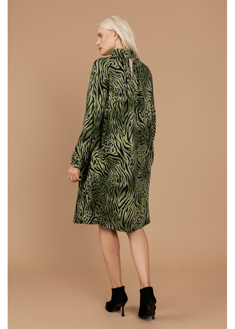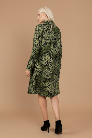 Opis: Haljina ležernog kroja u zelenom animal printu sa dugim rukavima