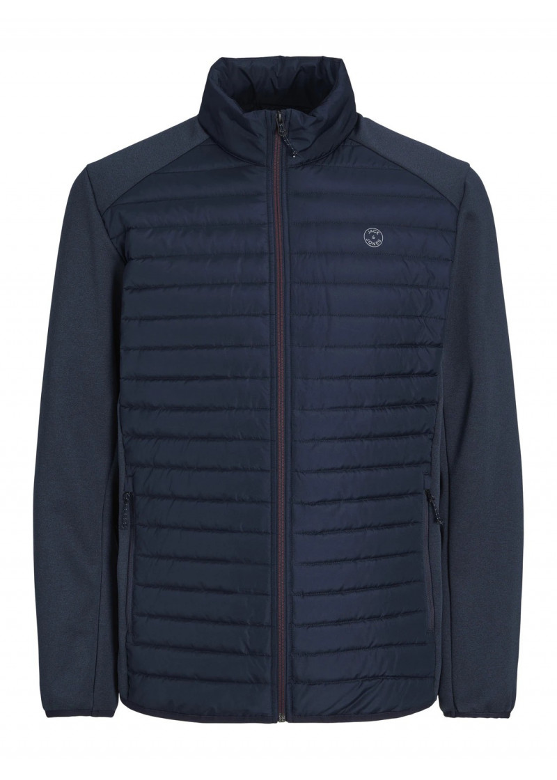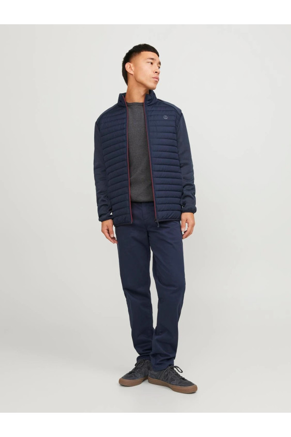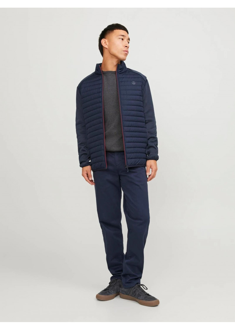 Opis: Muška štepana jakna u teget boji sa zipom i visokom kragnom