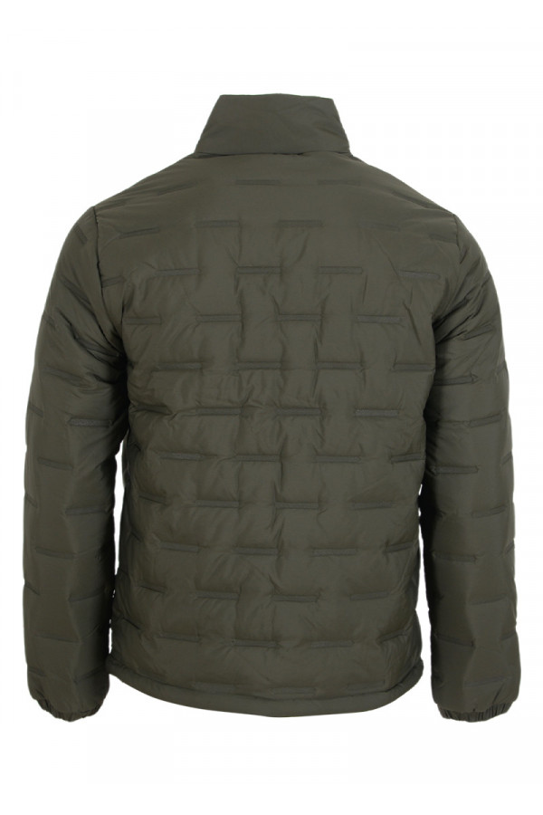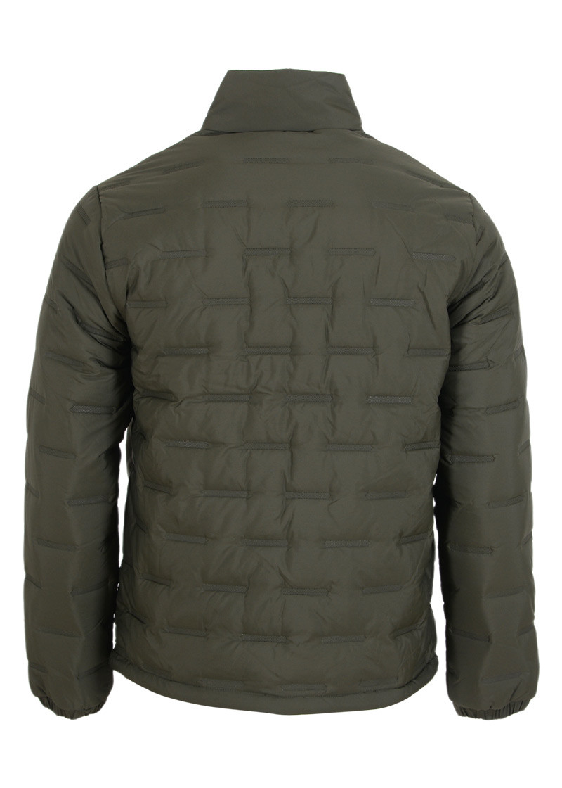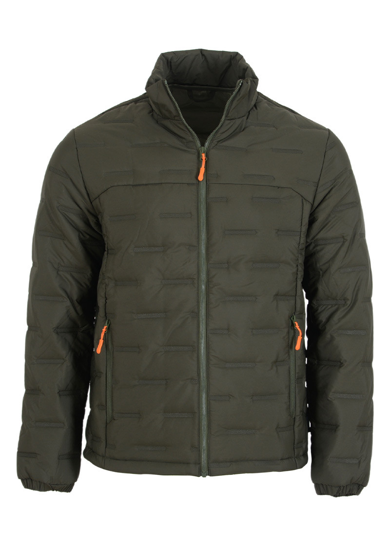 Opis: Muška štepana jakna u maslina zelenoj boji sa zipom i visokom kragnom