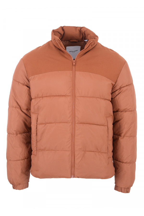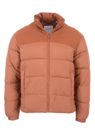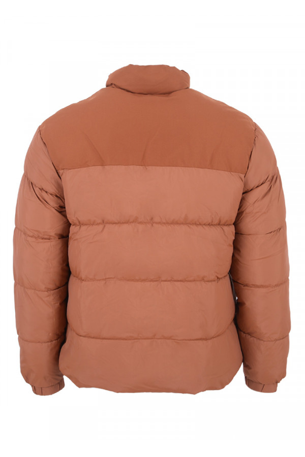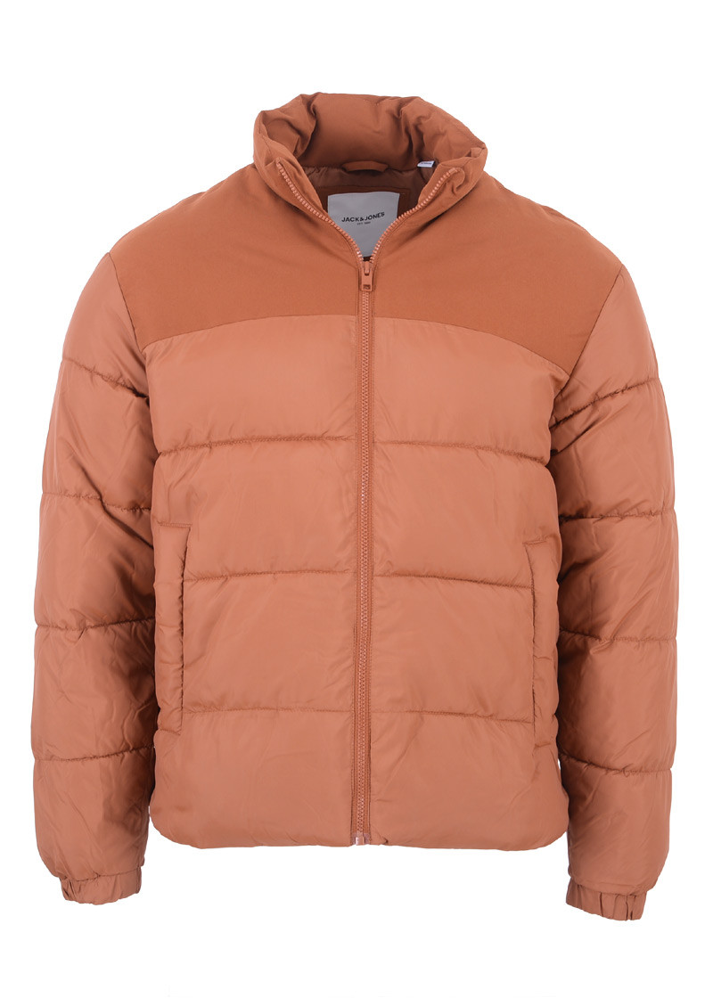 Opis: Muška perjana jakna u narandžastoj boji sa zipom, visokom kragnom i bočnim džepovima