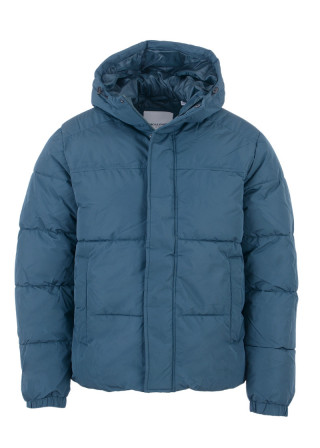Opis: Muška perjana jakna u plavoj boji sa kapuljačom i bočnim džepovima