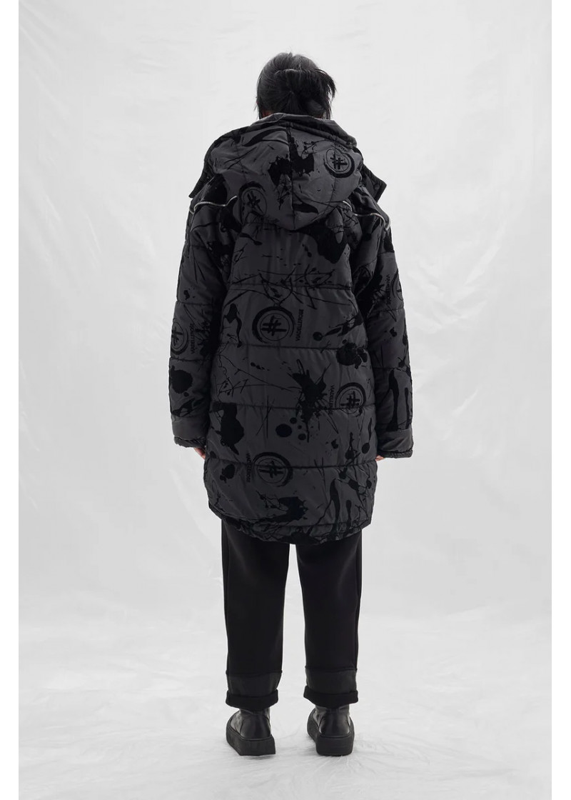 Opis: Ženska jakna u crnoj boji asimetrične dužine sa zipom, kapuljačom i visokom kragnom