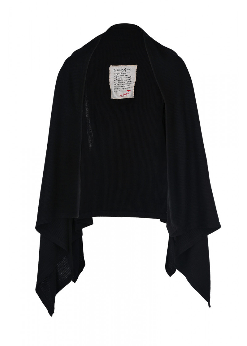 Opis: Ženski kardigan asimetrične dužine u crnoj boji