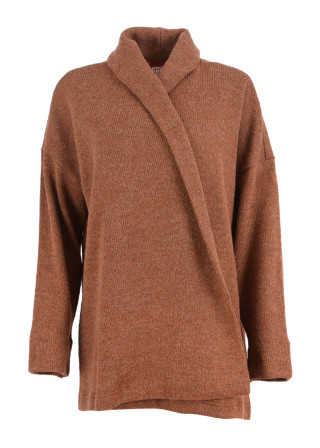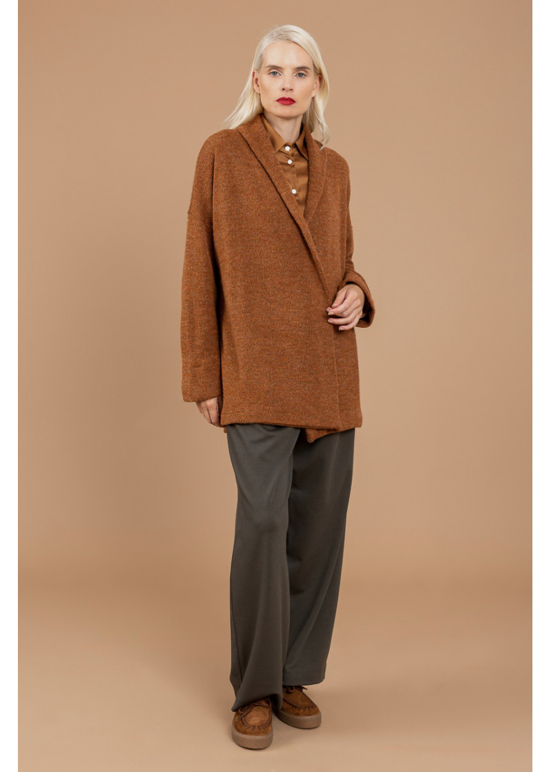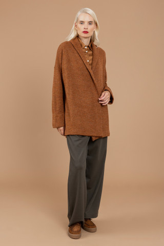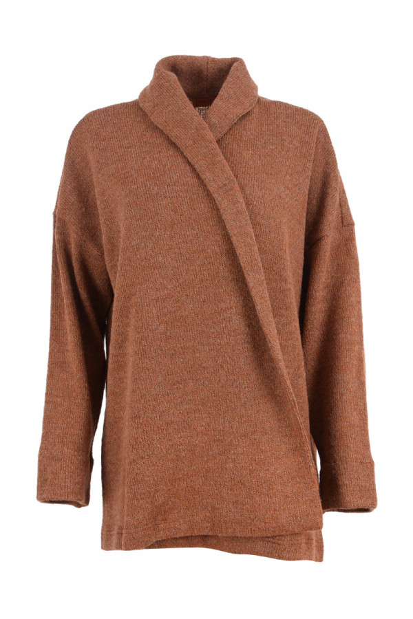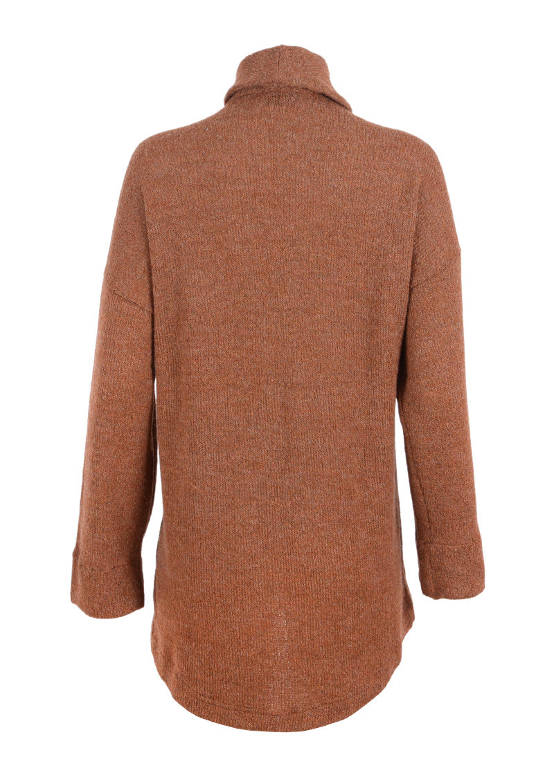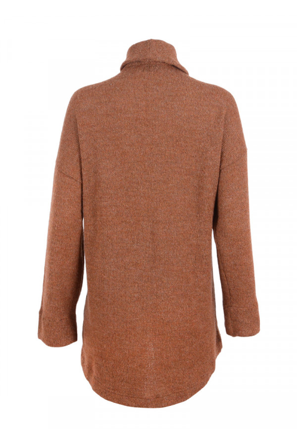 Opis: Ženski kardigan u duvan boji sa polurol okovratnikom i dugim rukavima