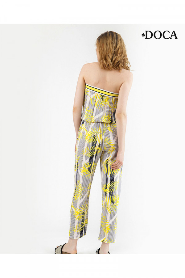 Opis: Ženski kombinezon bez rukava, u cvetnom dezenu, nabran u predelu struka
