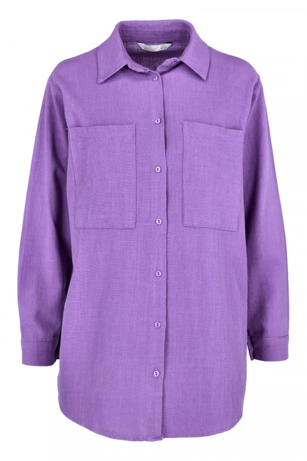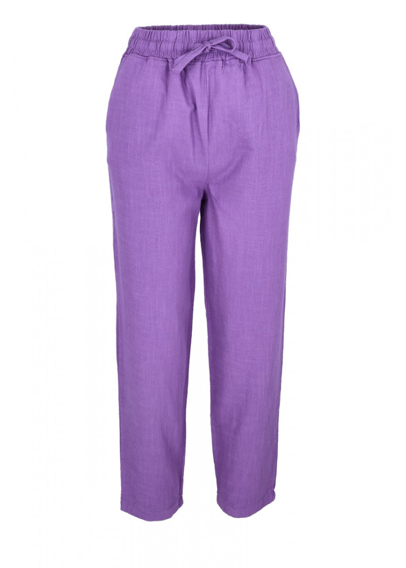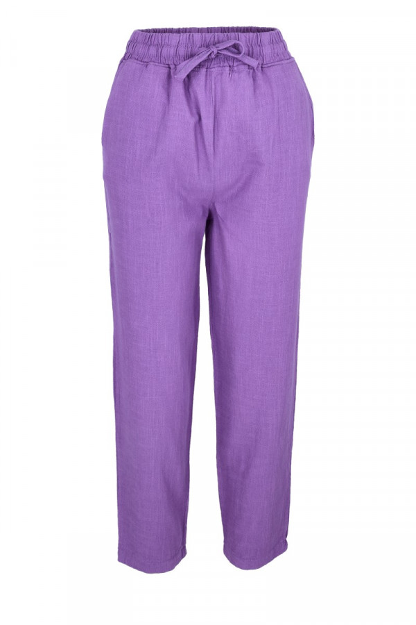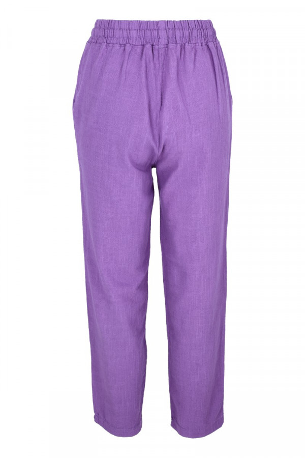 Opis: Pamučni komplet sa košuljom i pantalonama u lila boji