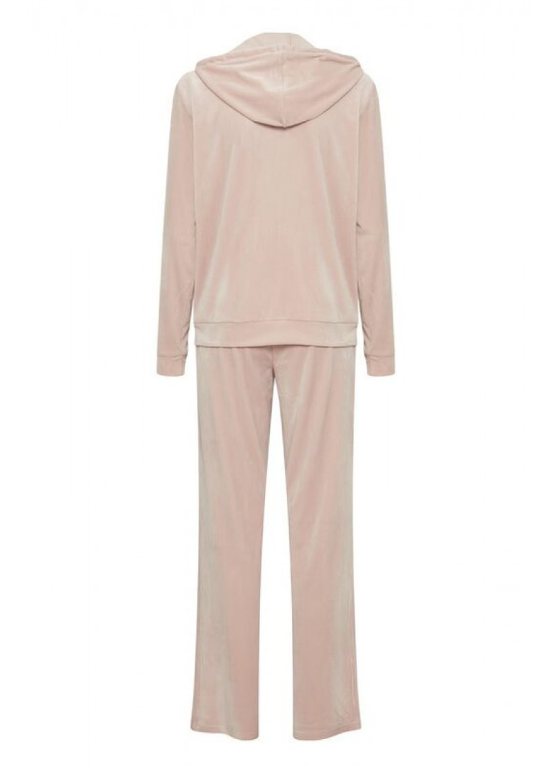 Opis: Ženski komplet gornjeg i donjeg dela trenerke u puder roza boji