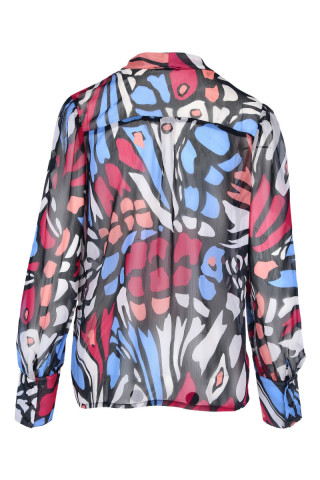 Opis: Ženska košulja sa dugim rukavima i ešarpom u šarenom printu, ležernog kroja