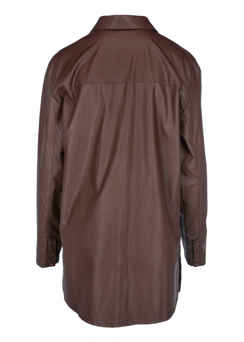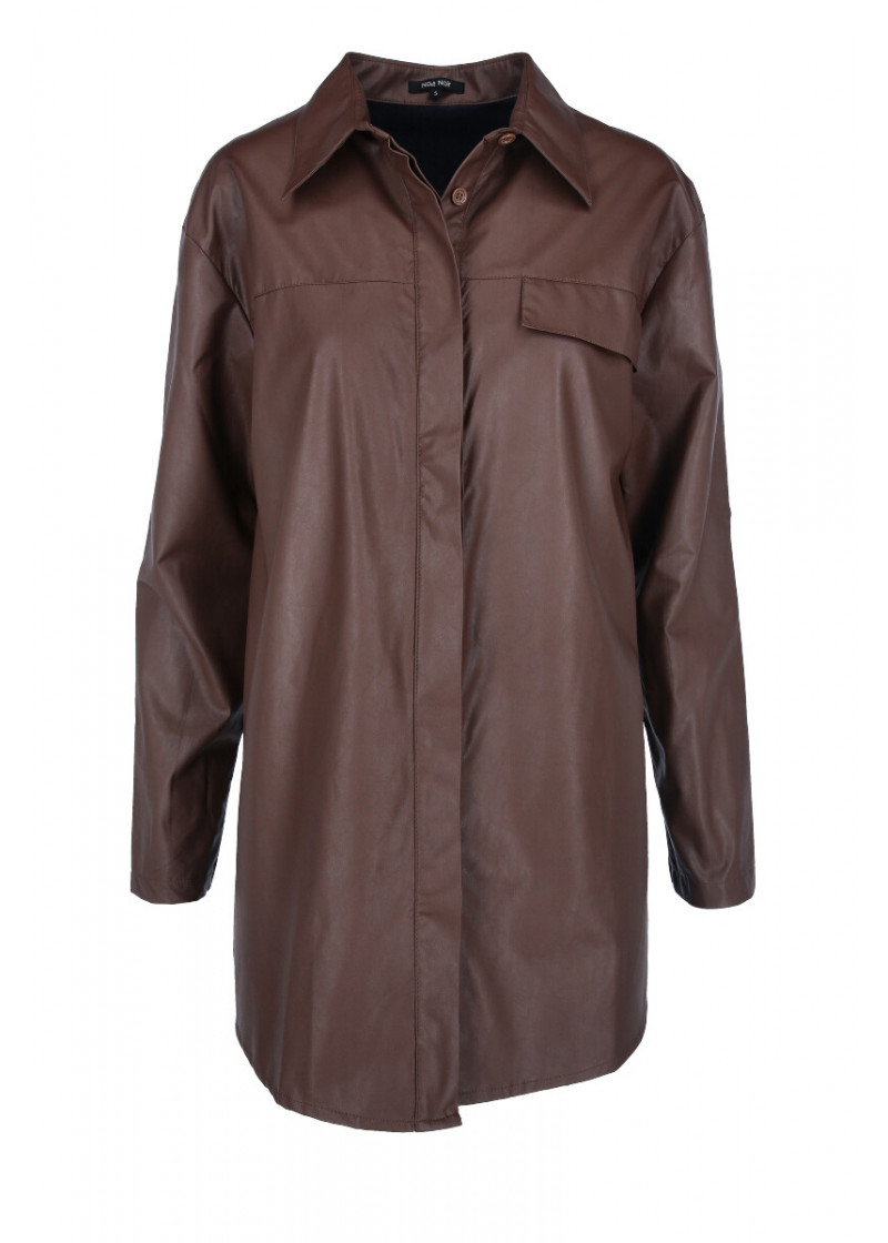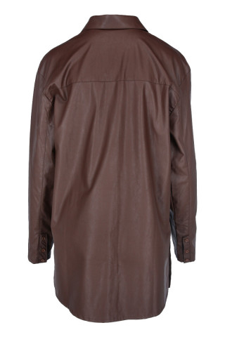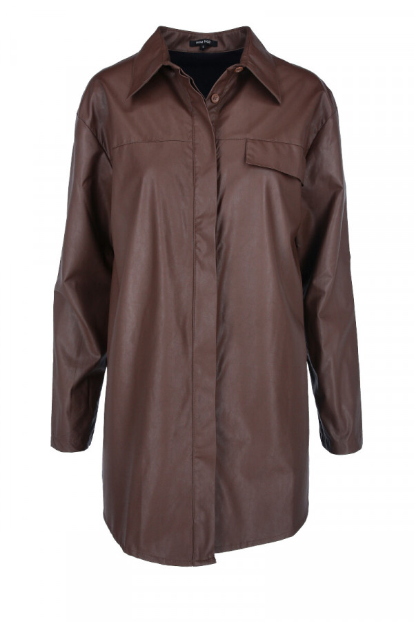 Opis: Ženska košulja dugih rukava u braon boji sa sjanim oremazom