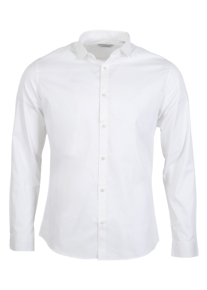 Opis: Pamučna muška slim fit košulja u beloj boji sa dugim rukavima
