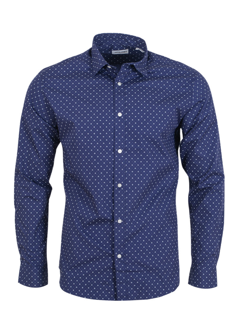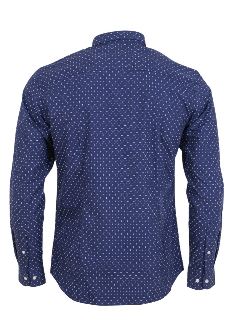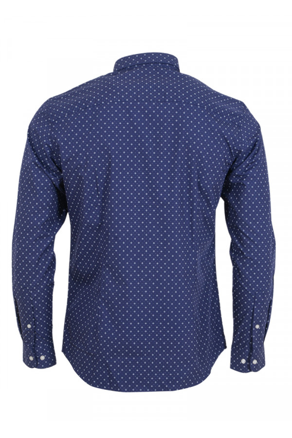 Opis: Muška regular fit košulja u teget tufna dezenu sa dugim rukavima
