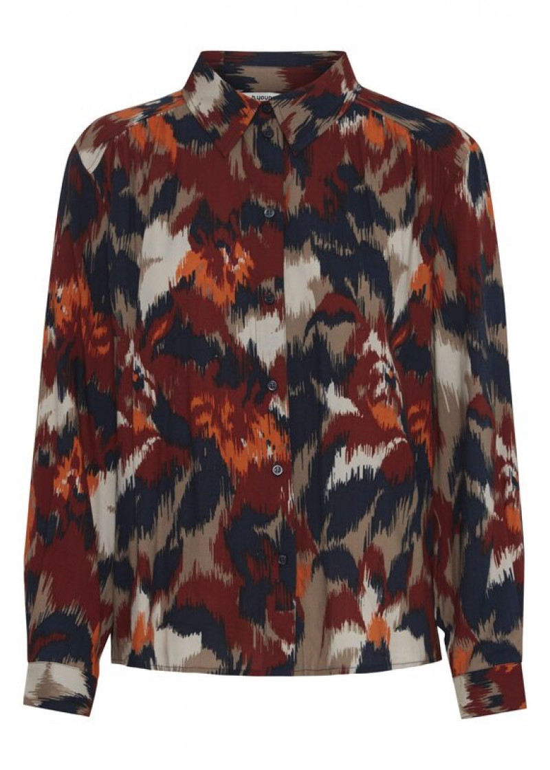Opis: Ženska košulja od viskoze u šarenom dezenu sa kragnom i dugmićima