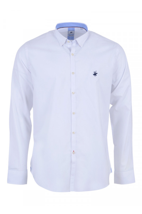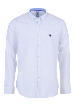 Opis: Pamučna muška košulja u beloj boji sa dugim rukavima i logo aplikacijom