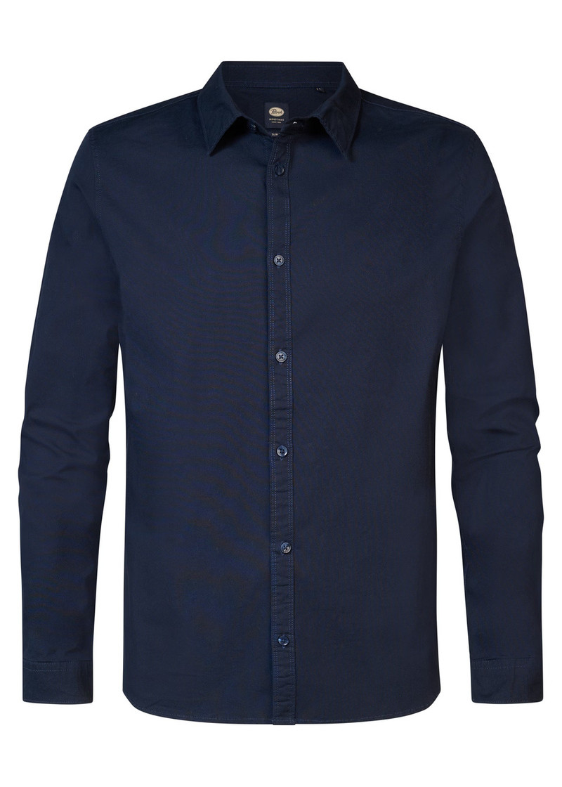 Opis: Pamučna muška regular fit košulja u teget boji sa dugim rukavima