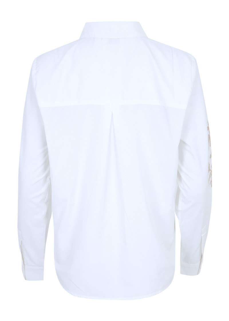 Opis: Ženska košulja u beloj boji sa dugim rukavima i printom