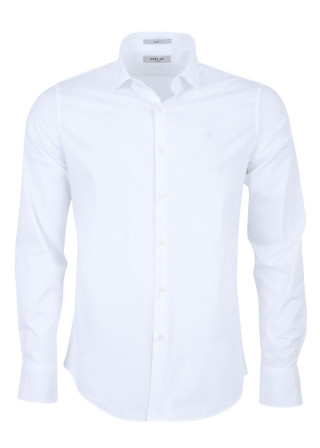 Opis: Pamučna muška slim fit košulja u beloj boji sa dugim rukavima