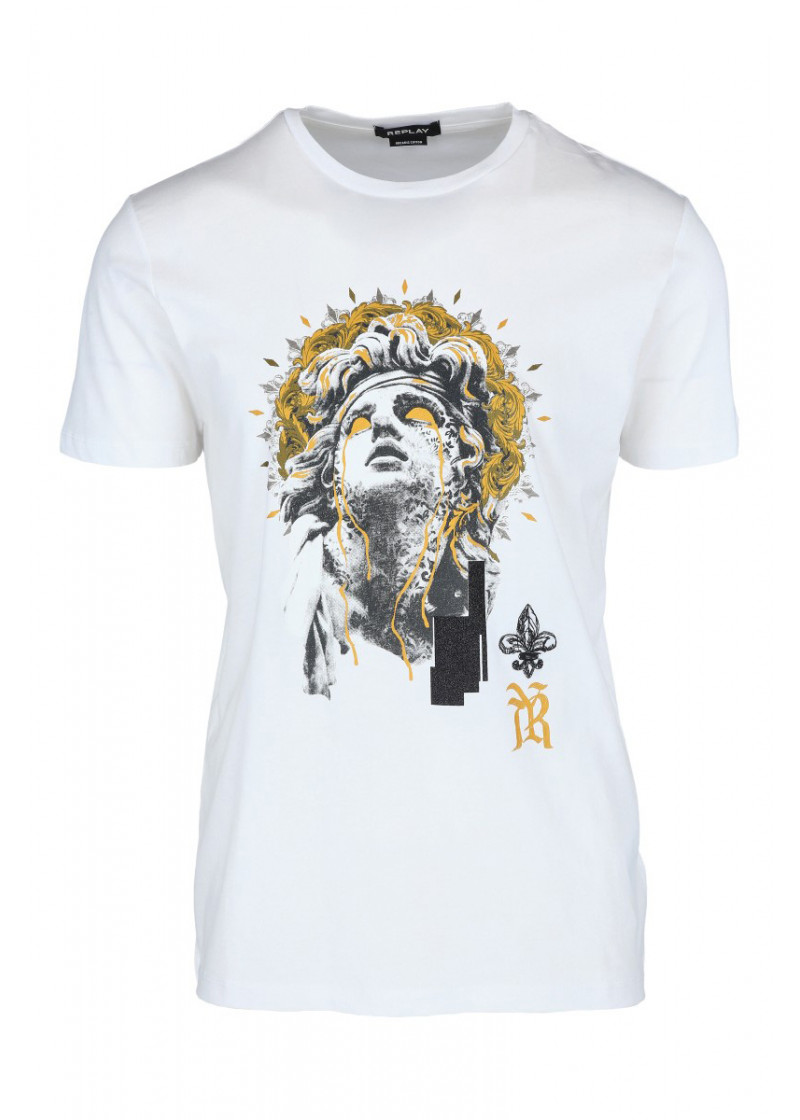 Opis: Pamučna muška majica u beloj boji regular fit kroja sa kratkim rukavima i printom na prednjoj strani.