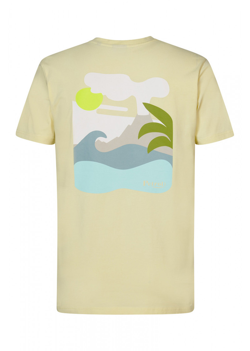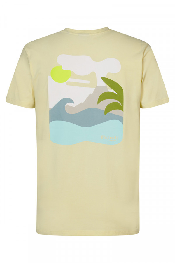 Opis: Pamučna muška majica u limun žutoj boji sa kratkim rukavima, okruglim izrezom i morskim printom