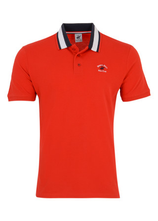 Opis: Pamučna muška polo majica u crvenoj boji sa kratkim rukavima i logo printom na kragni
