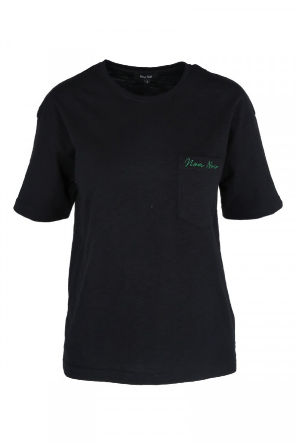 Opis: Pamučna ženska majica u crnoj boji ležernog kroja sa kratkim rukavima, džepom i logo printom na prednjoj strani