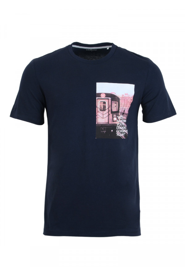 Opis: Pamučna muška regular fit majica u teget boji sa kratkim rukavima i printom