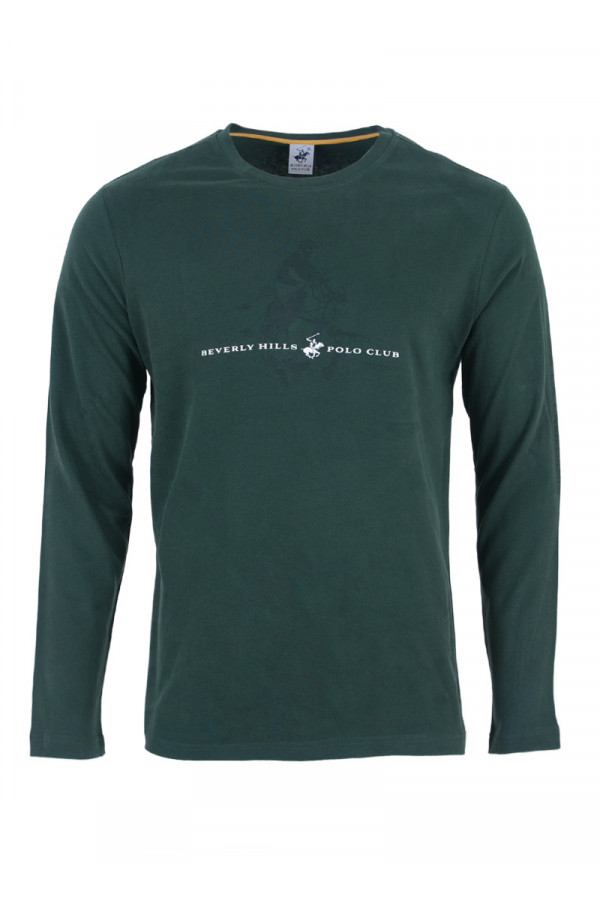Opis: Pamučna muška majica u zelenoj boji sa dugim rukavima i logo printom