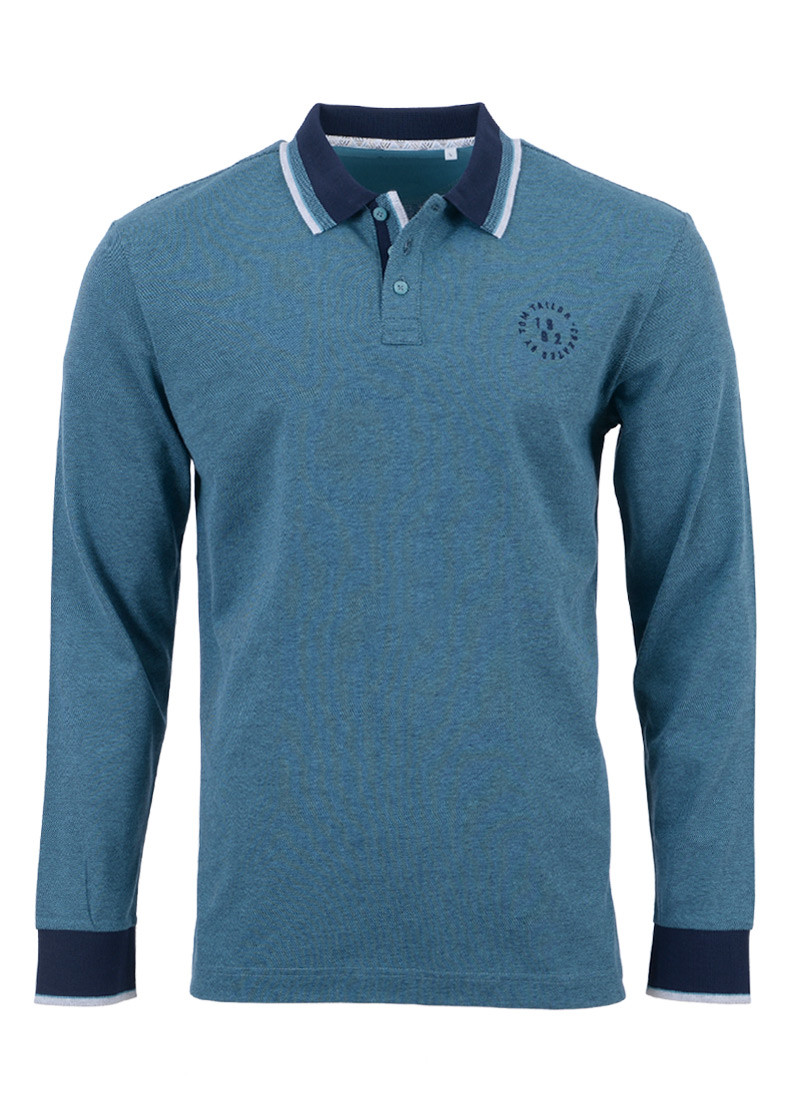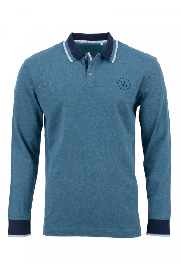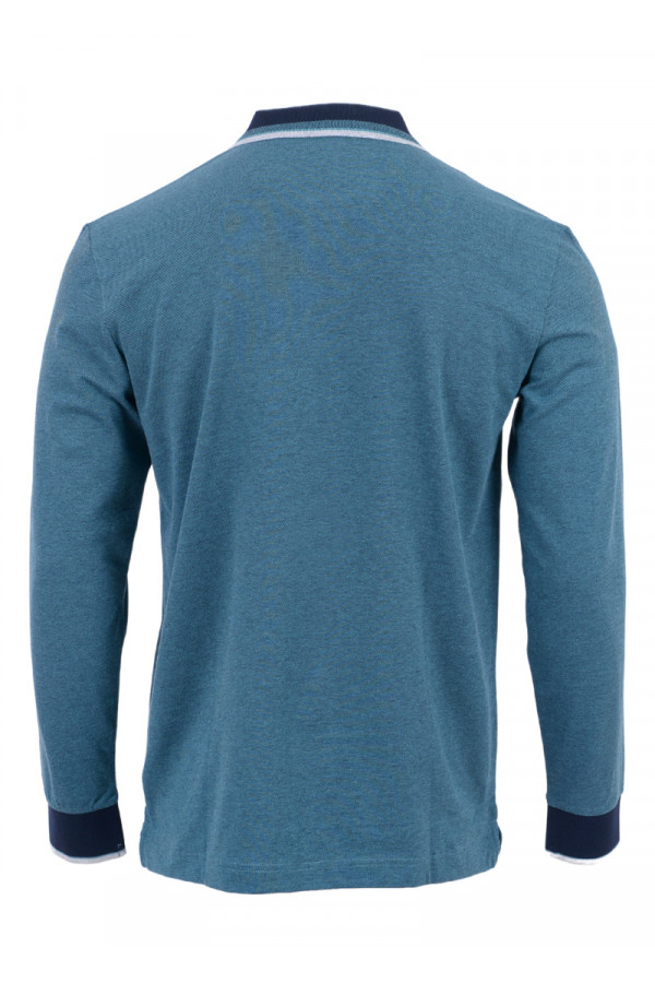 Opis: Muška polo majica u tirkiz boji sa dugim rukavima, detaljima na kragni i logo printom
