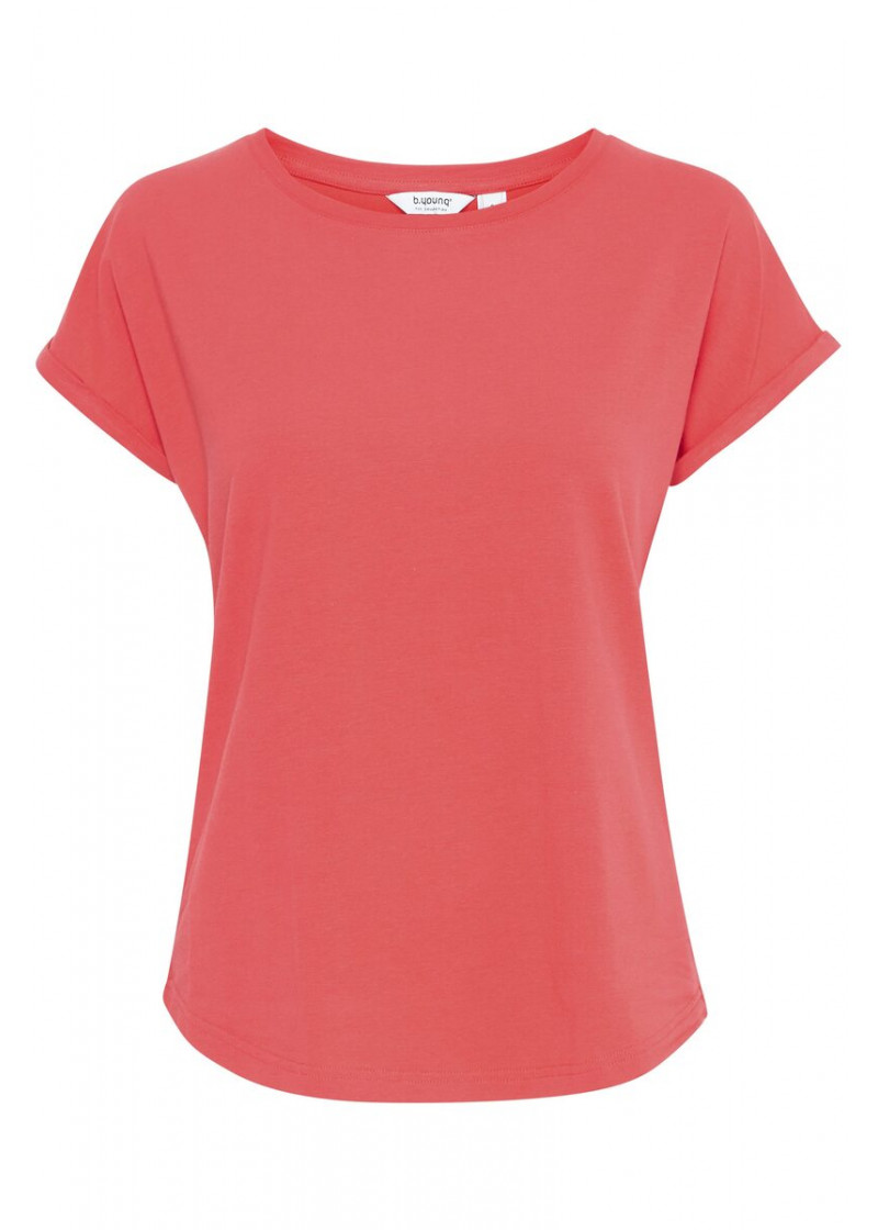 Opis: Ženska majica kratkih rukava u koral crvenoj boji