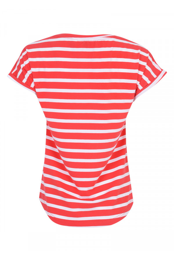 Opis: Ženska majica sa kratkim rukavima u crveno-belom prugastom printu