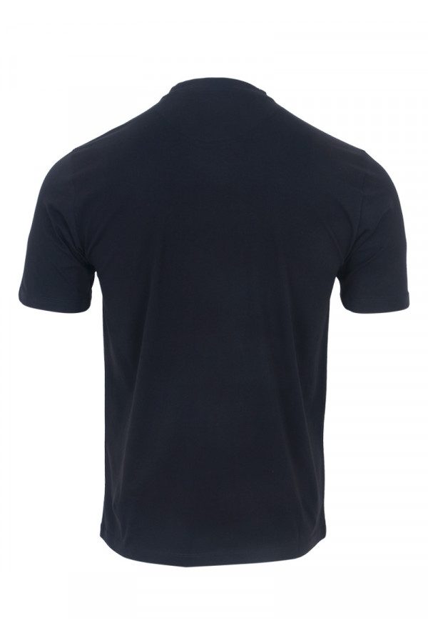 Opis: Pamučna muška majica u crnoj boji sa kratkim rukavima i okruglim izrezom oko vrata