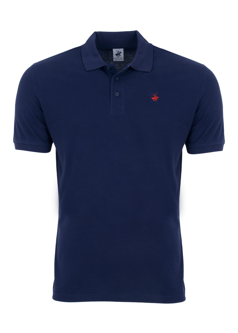 Opis: Pmaučna muška polo majica u tamno plavoj boji sa kratkim rukavima i logo znakom