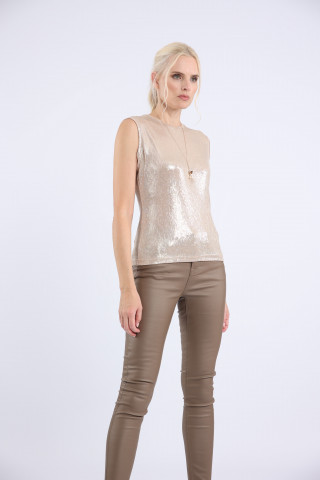 Opis: Ženska majica bez rukava u metalik zlatnoj boji