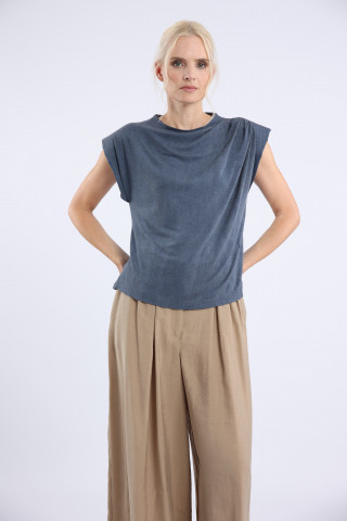 Opis: Ženska majica od viskoze u čelik plavoj boji sa kratkim rukavima