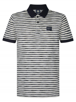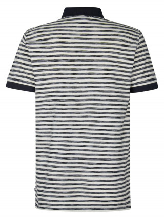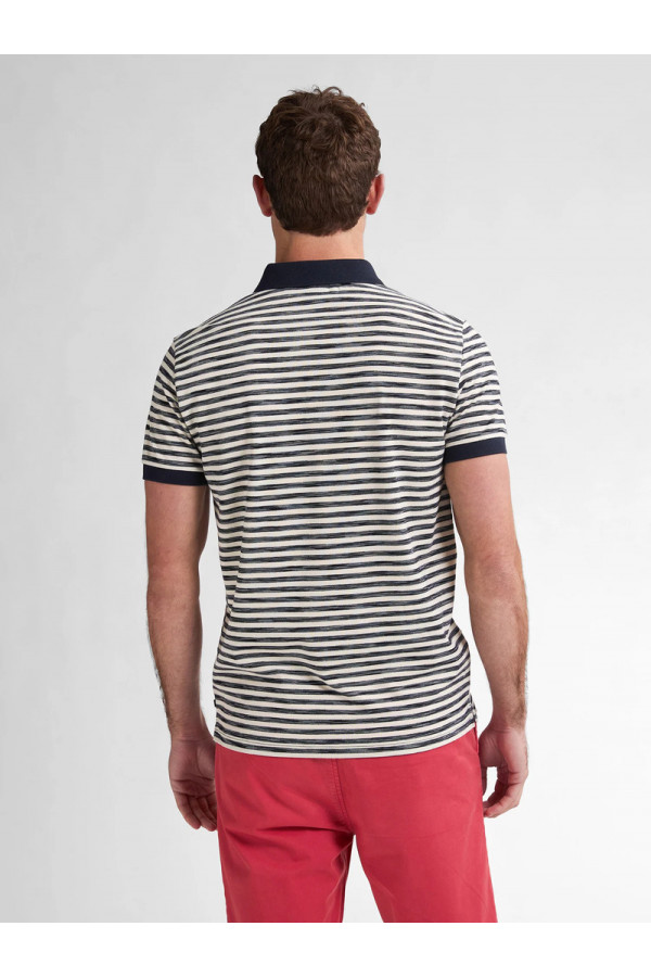Opis: Muška polo majica u prugastom teget-belom printu sa kratkim rukavima i logo znakom