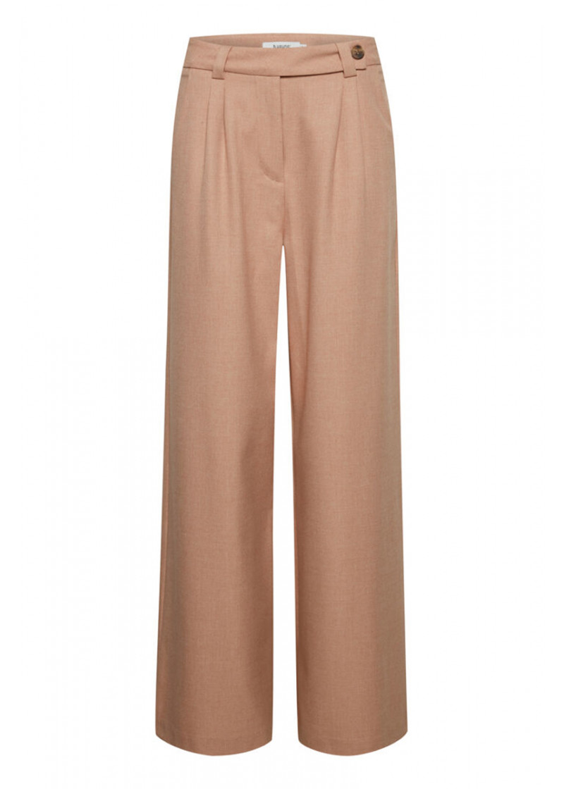 Opis: Ženske pantalone u boji breskve sa visokim strukom i širokim nogavicama