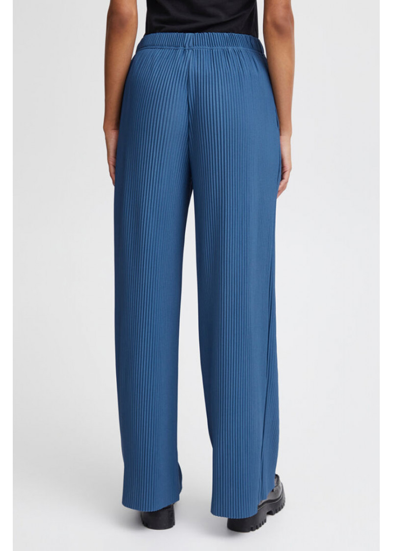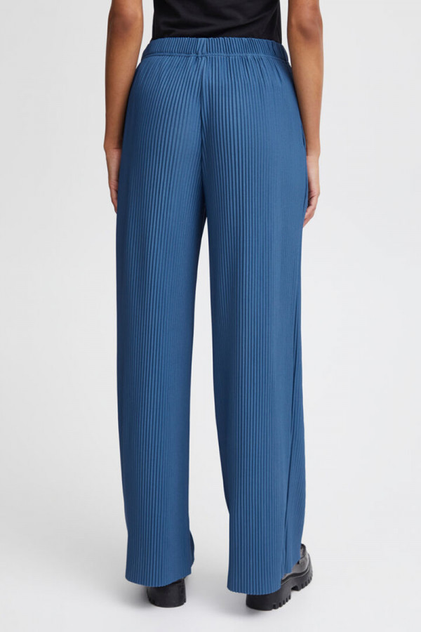 Opis: Ženske pantalone u tamno plavoj boji sa ravnim nogavicama i lastiš pojasom