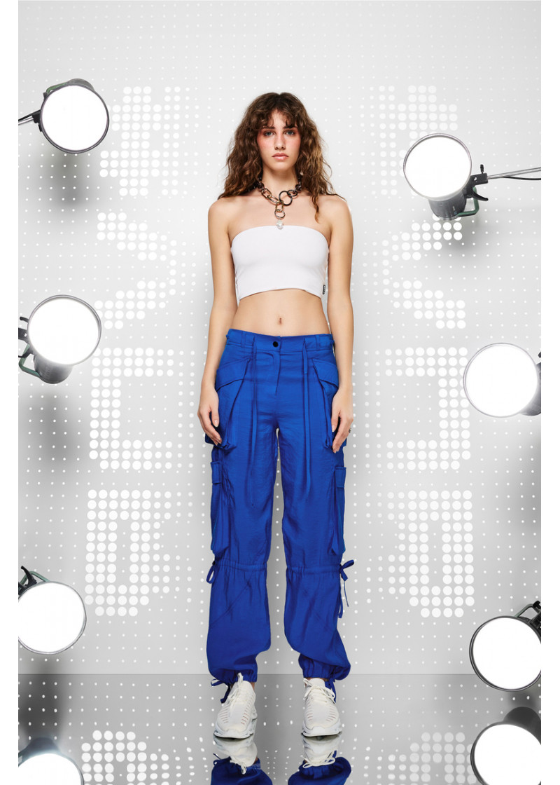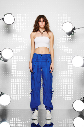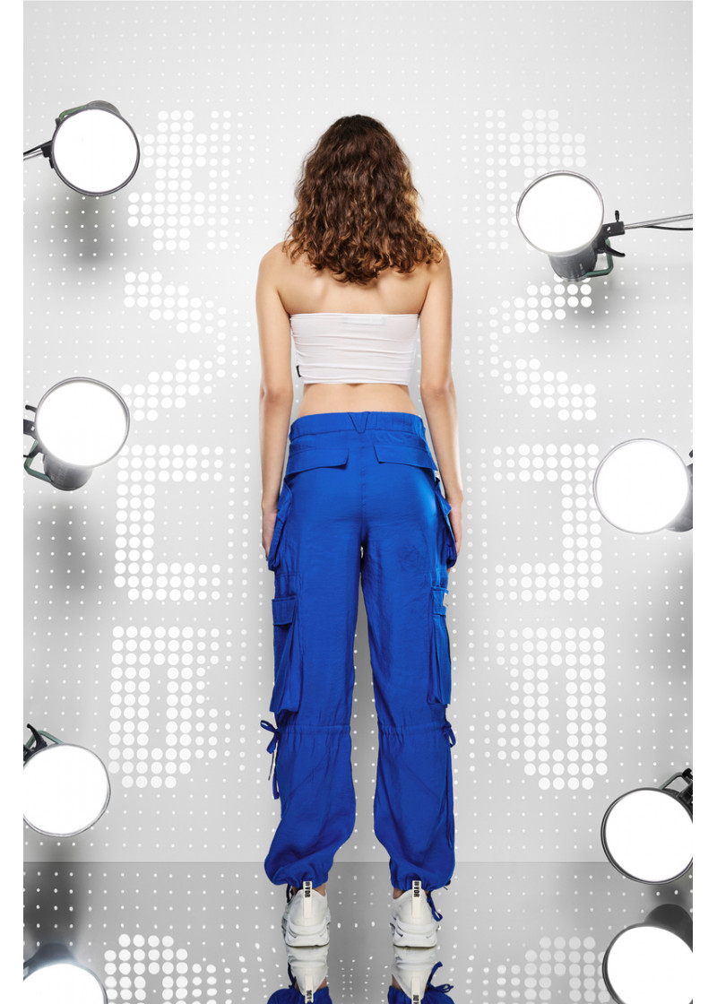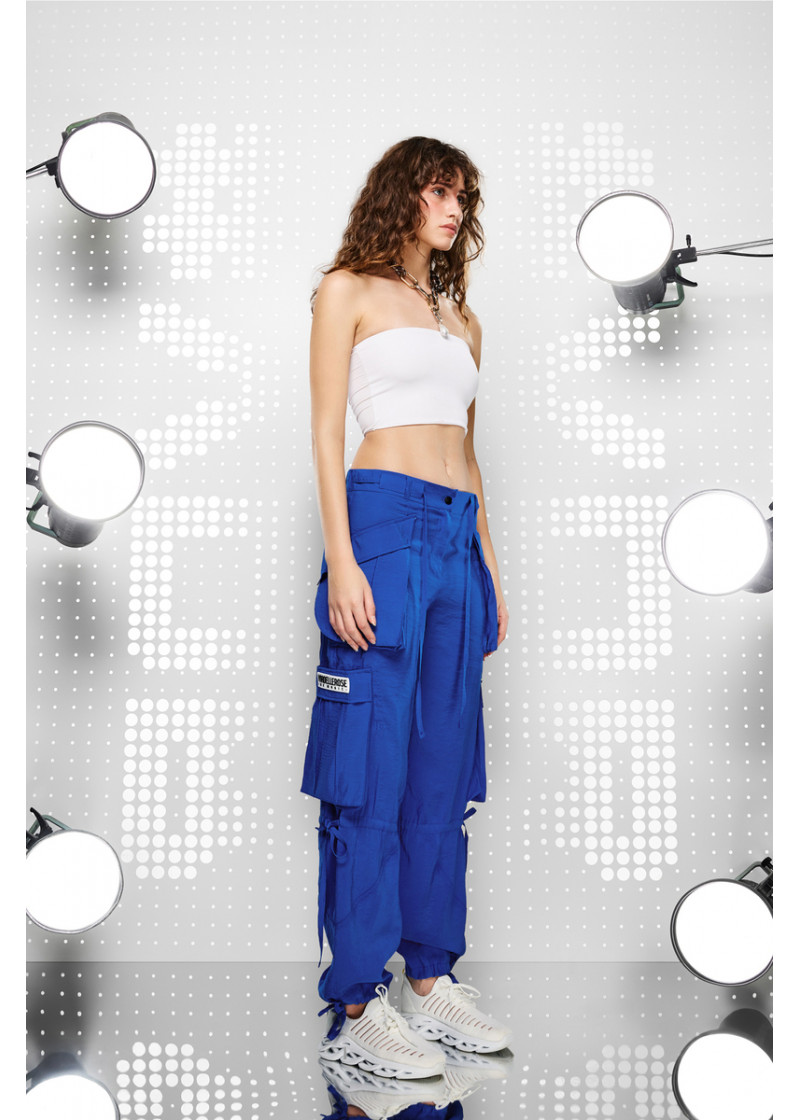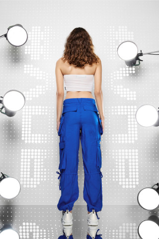 Opis: Ženske kargo pantalone u royal plavoj boji sa učkurima