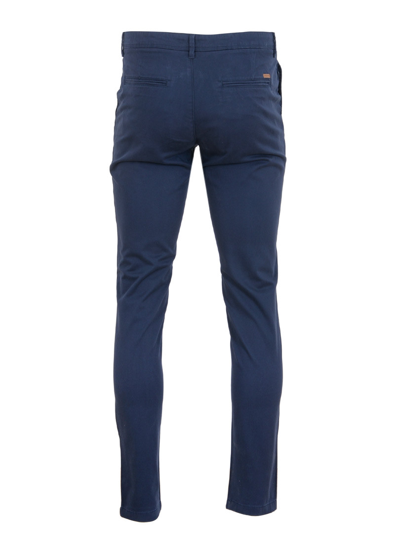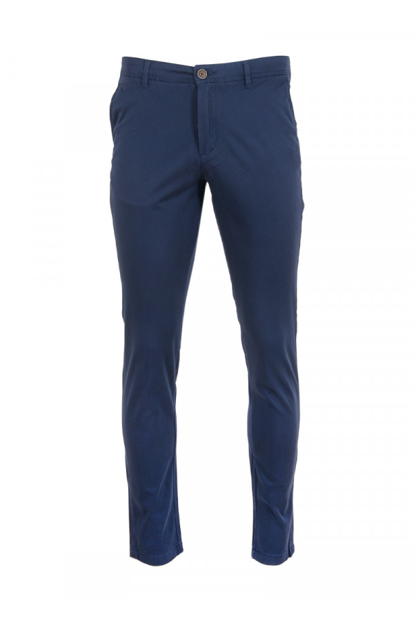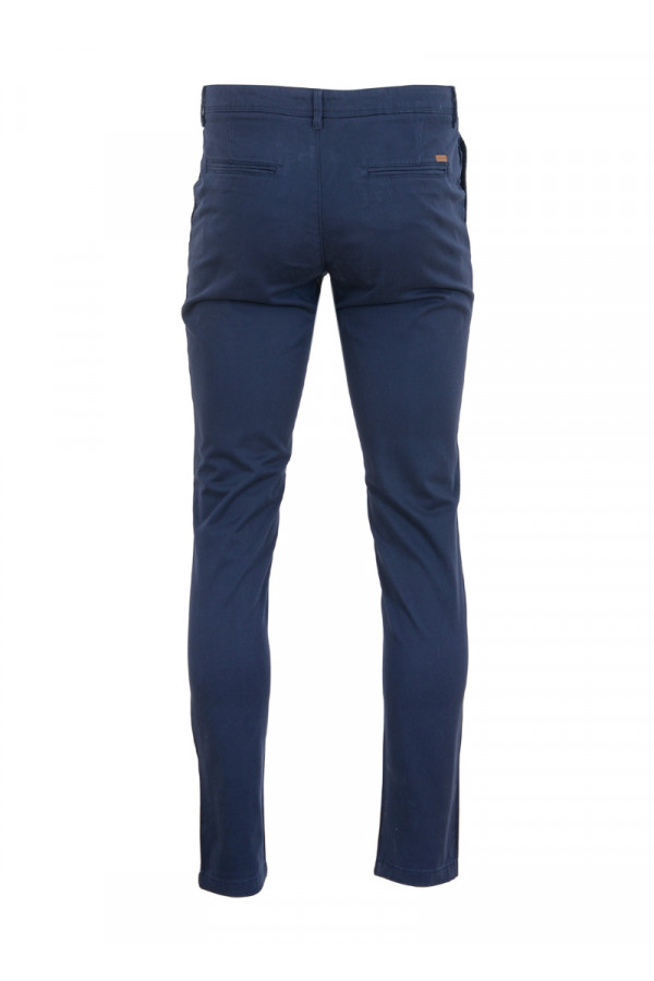 Opis: Pamučne muške slim fit chino pantalone sa niskom strukom u teget boji