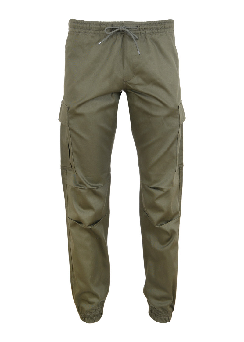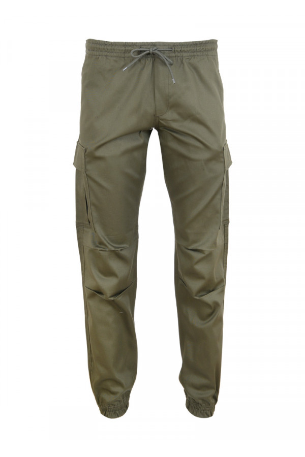 Opis: Muške kargo pantalone u maslina zelenoj boji sa lastiš pojasom