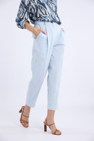 Opis: Ženske pantalone u svetlo plavoj boji sa visokim strukom i 7/8 nogavicama