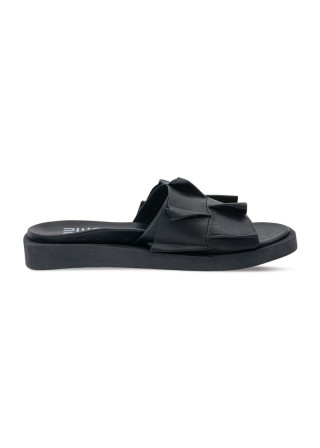 Opis: Kožne ženske ravne papuče u crnoj boji sa naborima i blago izdignutim đonom