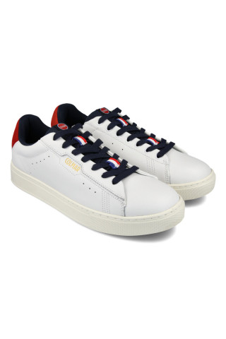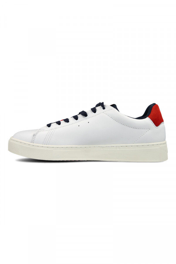 Opis: Kožne muške patike u beloj boji sa teget i crvenim detaljima